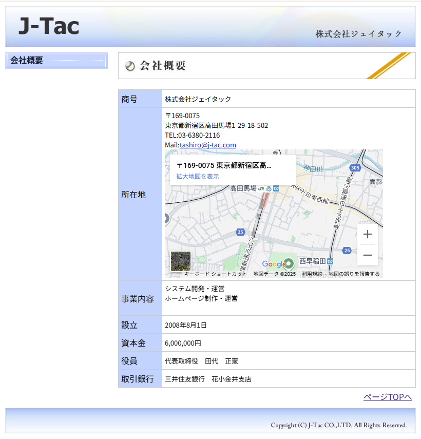 株式会社ジェイタックのホームページをご覧いただきありがとうございます。